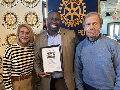 South Jersey Rotary District 7505 Governor Michael Thompson addressed the joint Rotary meeting Dec. 17, 2025, for the Somers Point and Ocean City -Upper Township Rotary Clubs. Pictured, from left Kelly Willman, President of the Somers Point Rotary Club; Gov Michael; and Bruce Engle, Board member of the Ocean City – Upper Twp. Rotary Club. Gov. Tompson’s annal visit / program for our Clubs included information on the developments for the planned merger of our Rotary District here in southern and center NJ with the northern NJ District that encompasses Bergen, Hudson, and Passaic counties. The new Rotary district, to be implemented in July 2026, will be titled “NJ Rotary.”