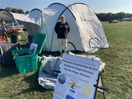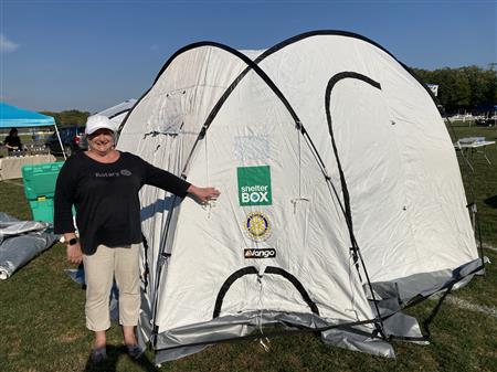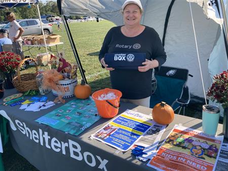 ShelterBox Display: Rotarian Cindy Harris-Chadwick at U-Twp. Harvest Festival in Amanda's Field Oct. 3, 2021.